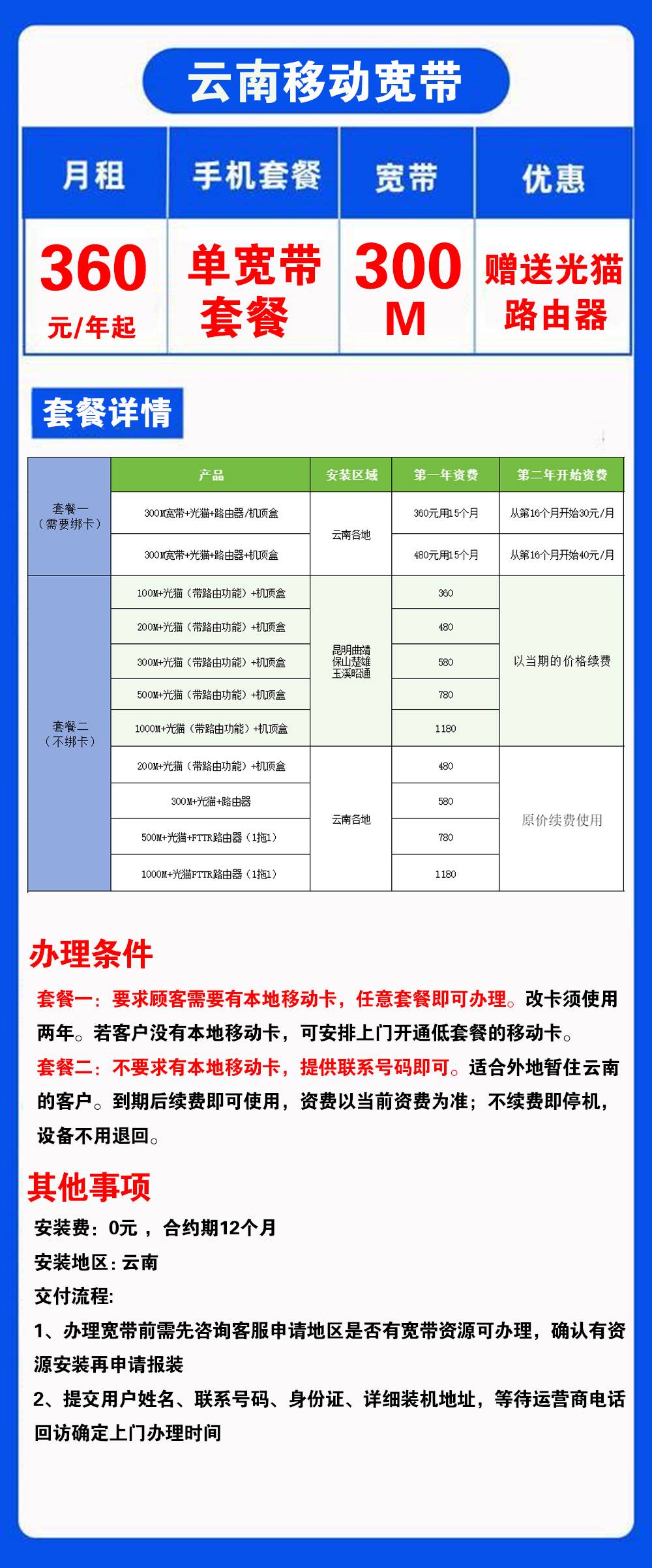 云南移动宽带月租手机套餐宽带优惠