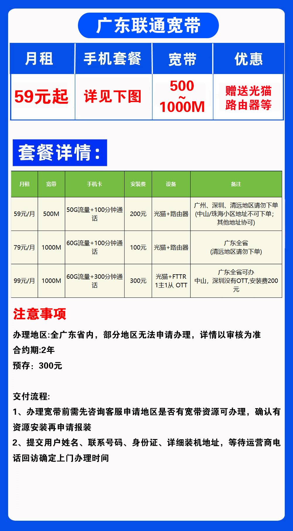 “多套餐选择”,”2年合约”,”宽带融合套餐”,”赠送光猫+路由器”,”话费预存”