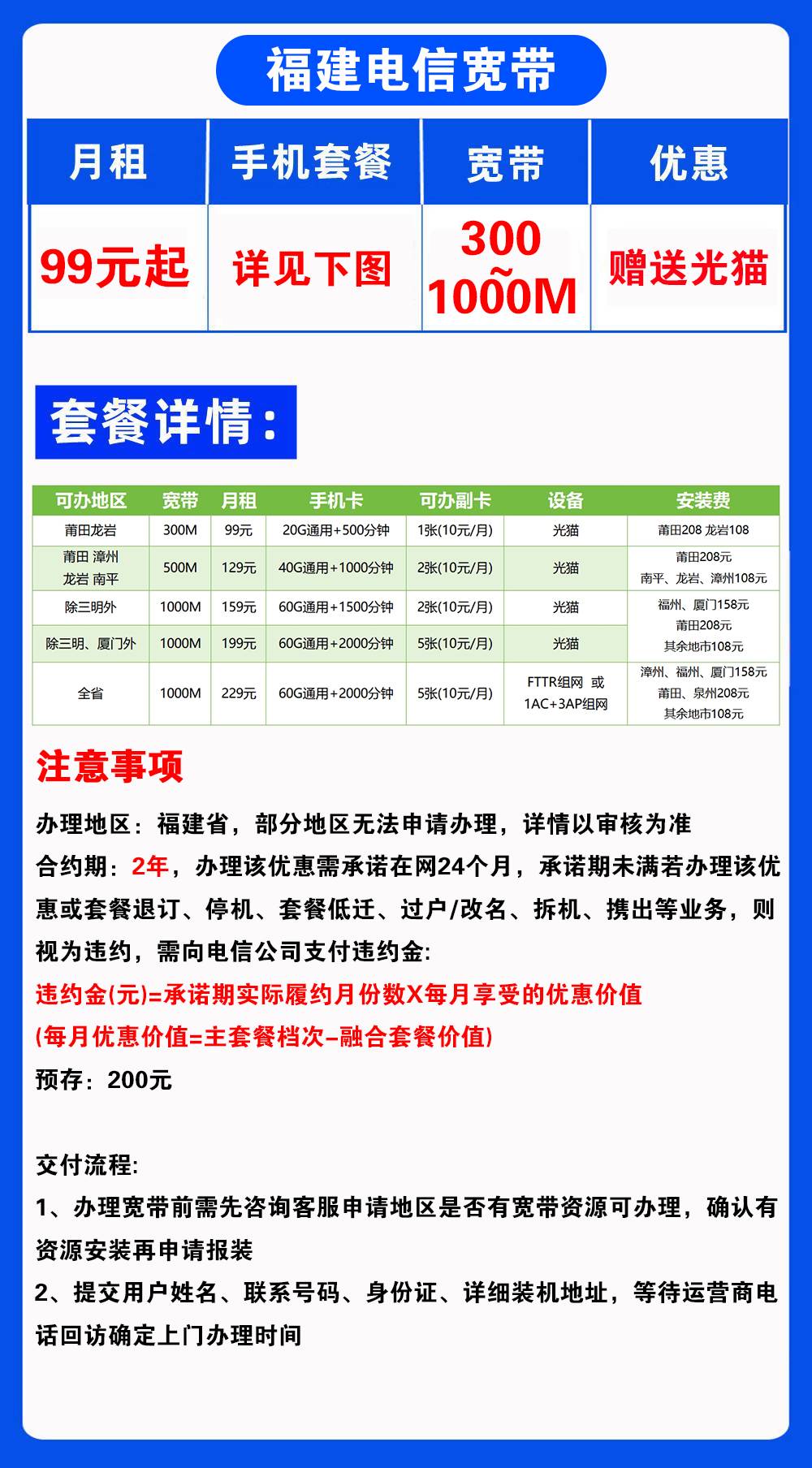- 办理宽带前需先咨询客服,确认是否有宽带资源可办理。