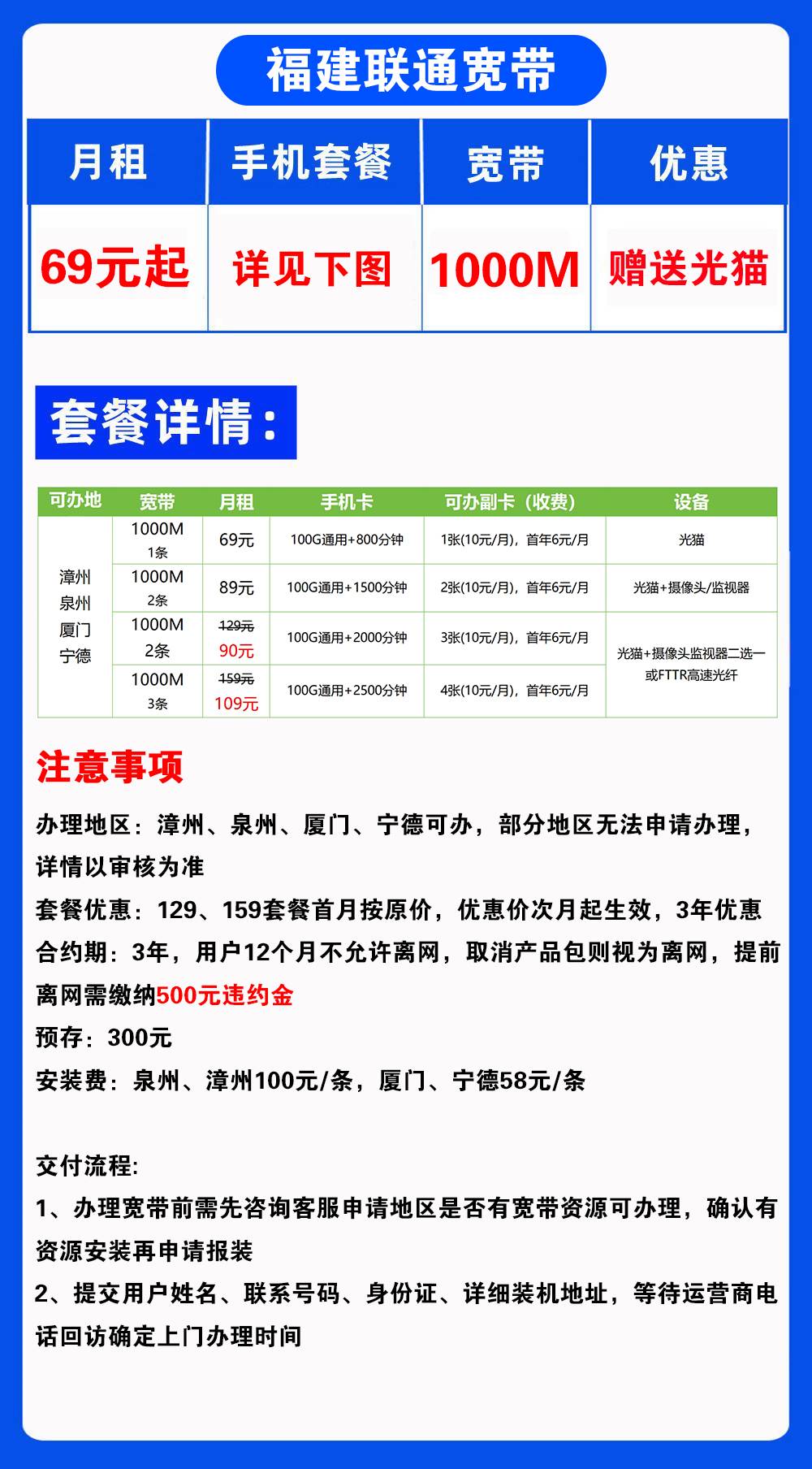 “融合宽带套餐”,”赠送光猫/FTTR”,”漳州、泉州、厦门、宁德可办”