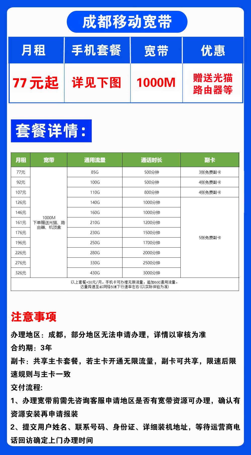 “融合宽带”,”可办无限流量”,”赠光猫+路由器+机顶盒”,”免费副卡”