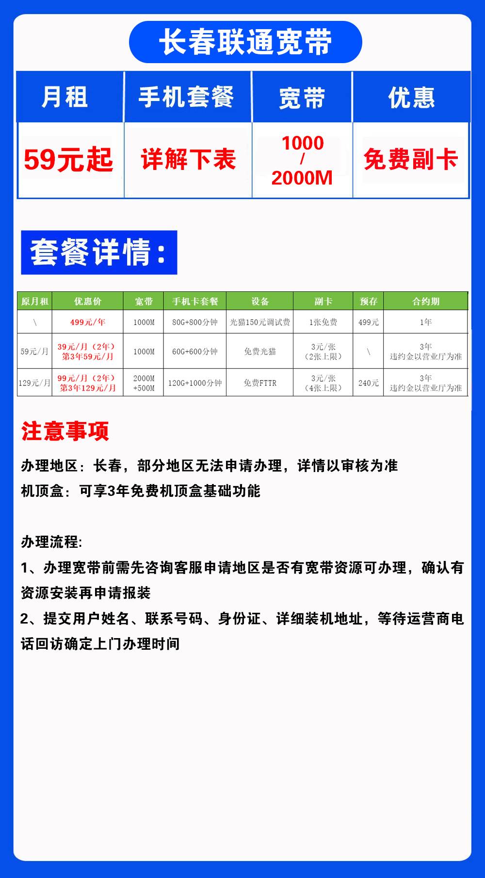 长春联通宽带月租手机套餐宽带优惠100059元起详解