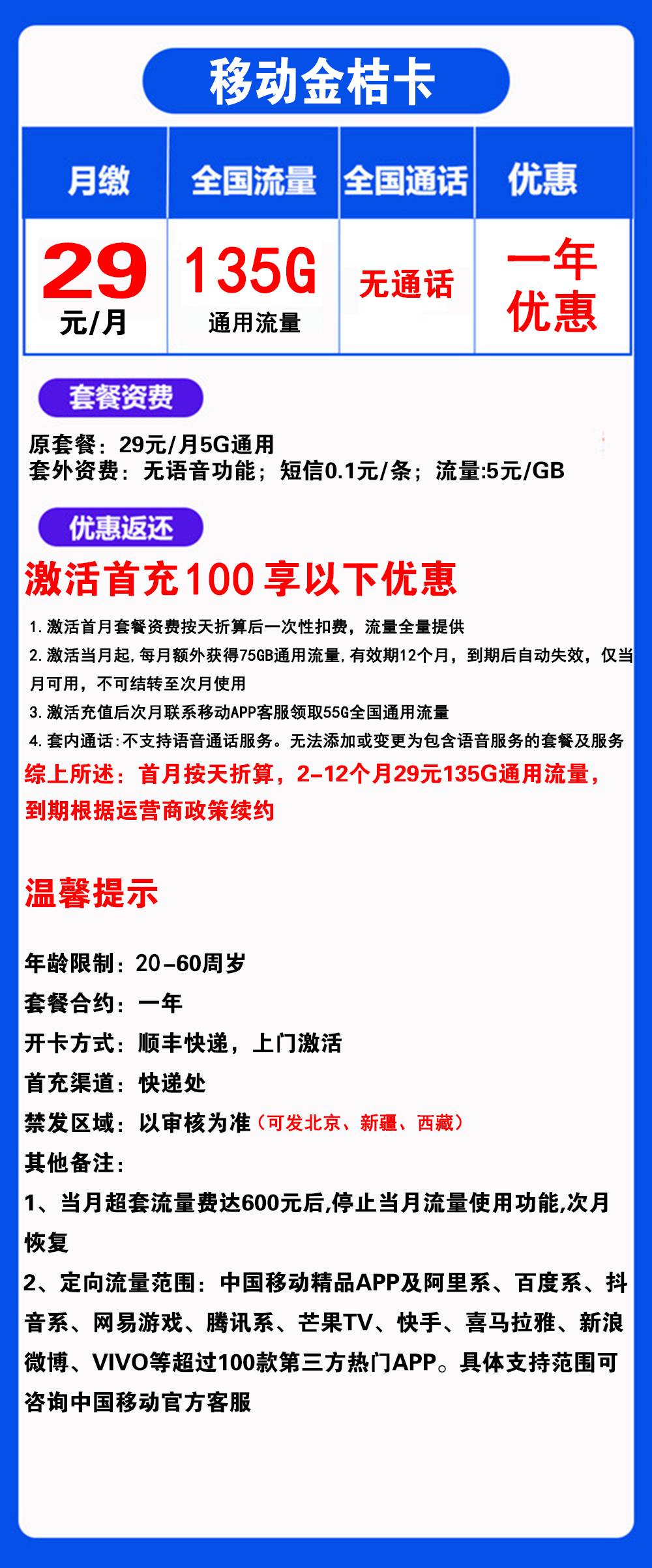 - 激活当月起:每月额外获得75GB通用流量,有效期12个月,到期后自动失效,仅当月可用,不可结转至次月使用