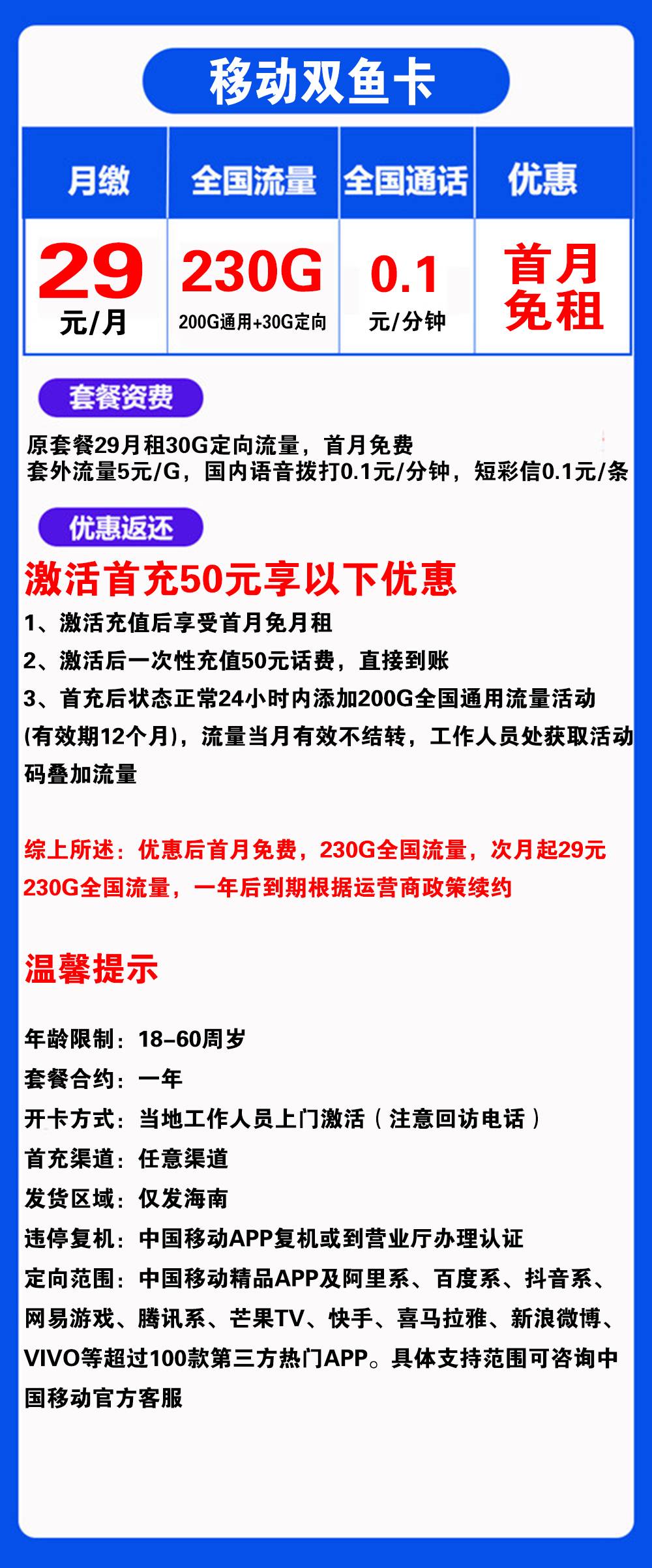 移动双鱼卡优惠信息